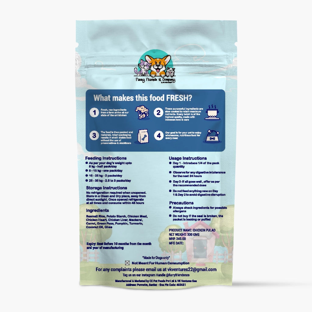 Ingredients: Basmati Rice, Potato Starch, Chicken Meat, Chicken Heart, Chicken Liver, Mackerel, Carrot, Green Peas, Pumpkin, Turmeric, Coconut Oil, Ghee